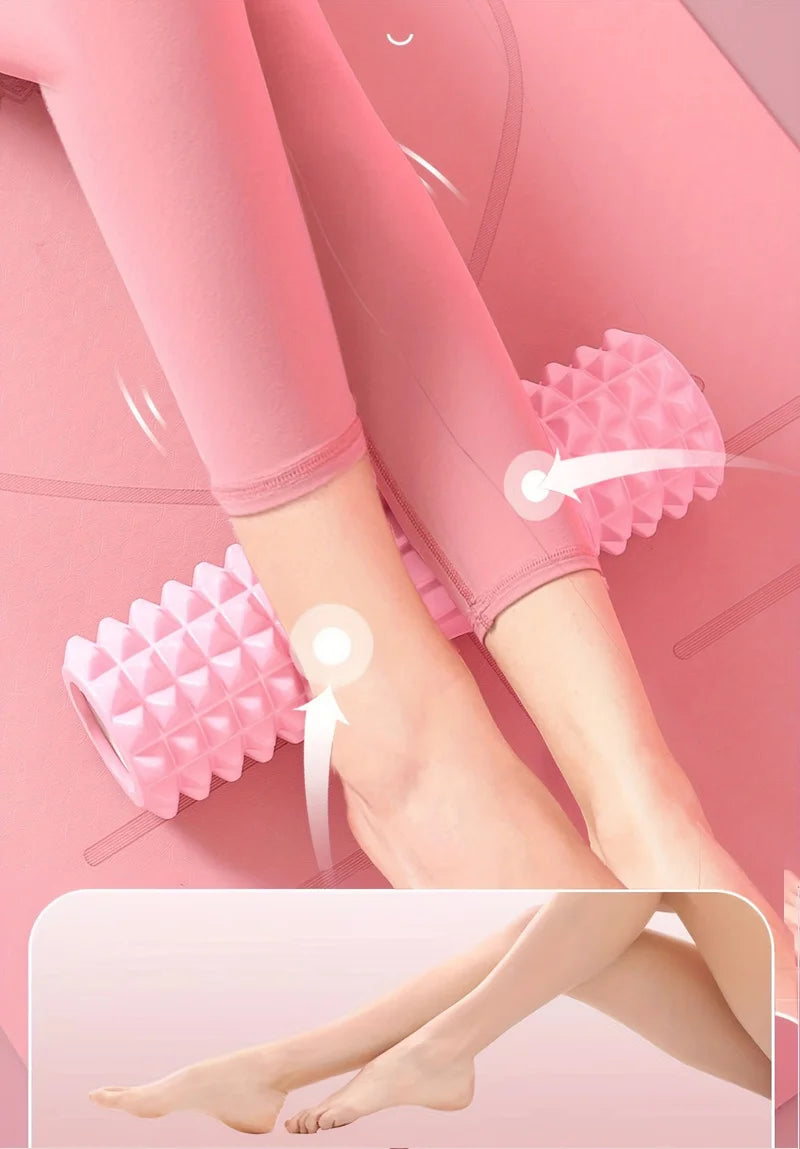 Designed with high-quality EVA foam, this textured roller offers deep tissue massage to target sore muscles and enhance blood circulation for faster recovery. Its unique hollow core and ergonomic surface deliver effective pressure to relieve back pain, muscle stiffness, and inflammation. Lightweight and portable, it is ideal for self-massage, exercise recovery, and providing support during yoga and Pilates sessions. The non-slip, waterproof, and odorless material ensures durability and ease of use across various muscle groups. Available in multiple sizes and colors to suit personal preferences and needs.