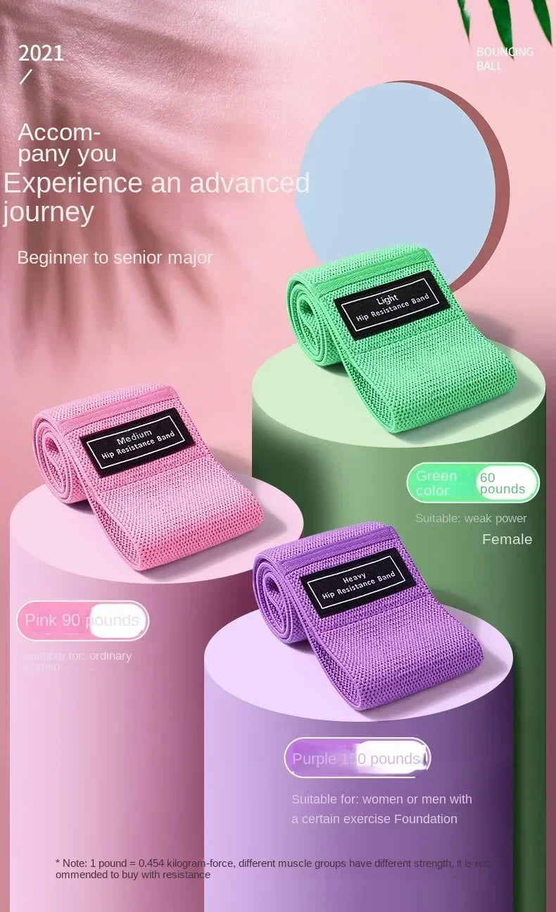 A set of three elastic resistance bands designed for effective lower body workouts, targeting hips, legs, and glutes. Constructed from soft, durable fabric with anti-slip features to prevent rolling or snapping during exercise. Available in light, medium, and heavy resistance levels to accommodate different training needs. Portable and easy to use anywhere, making them ideal for home, gym, or travel workouts.