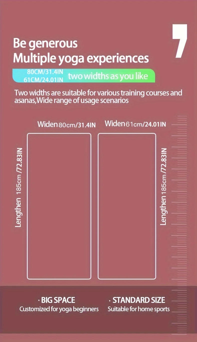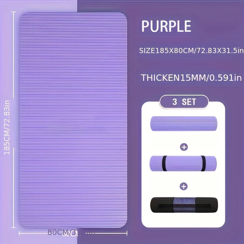 Available in two thicknesses, 10mm and 15mm, this yoga mat features a high-density NBR foam construction that provides excellent shock absorption and joint support. The waterproof and sweat-resistant surface incorporates a textured, anti-slip design to enhance safety and stability during workouts. With generous dimensions of 185 x 80 cm, it offers ample space for various exercises including yoga, Pilates, and gymnastics. Durable and easy to clean, the mat resists wear and maintains comfort for users at all levels, especially beginners.