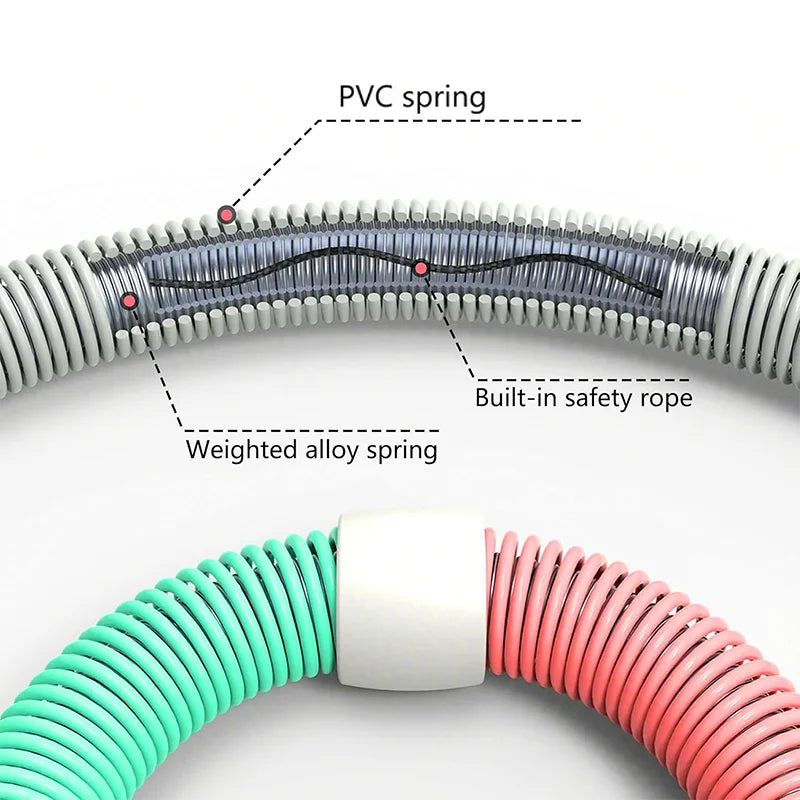 Designed with a PVC exterior and an internal weighted alloy spring, this fitness hoop provides a comfortable and secure fit around the waist. Its flexible, low-noise rotation allows for a smooth workout experience targeting the waist, chest, legs, and back. The foldable design makes it easy to carry and store, perfect for use at home, the office, or the gym. Available in weighted options to intensify calorie burn and enhance workout efficiency. Suitable for various body types and fitness levels.
